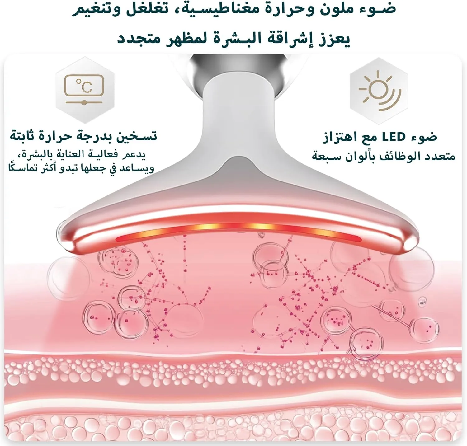 جهاز تدليك الوجه بتقنية حديثة مزود بمصابيح LED وحساس لمس ذكي، يعمل على تنشيط الدورة الدموية وشد البشرة بشكل فعال. يوفر عناية حرارية مهدئة تساعد على تحسين مرونة الجلد وتقليل علامات التعب. تصميم محمول وسهل الاستخدام للاستخدام اليومي في المنزل أو أثناء السفر.